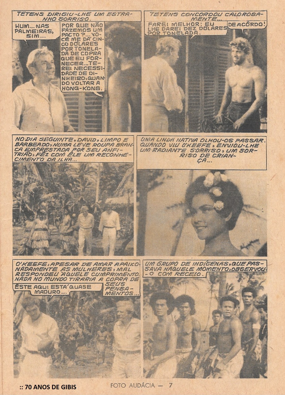 FOTO AUDÁCIA - Ediex - nº 04 - 1964 - Aqui mais um bom filme de aventuras, publicado em fotos preto-e-branco, estrelado pelo incrível ator Burt Lancaster - "Sua Majestade, o Aventureiro - His Majesty O'Keefe", de 1954, dirigido por Byron Haskin e o próprio Lancaster. No elenco também estão Joan Rice e Andre Morrell. O filme foi publicado no gibi com o título "A Rota das Ilhas". Tenho forte convicção que essisti a esse filme em 1959, por associação com outros fatos, e já me refiro, portanto, há 66 anos, um tempo muito expressivo!!!