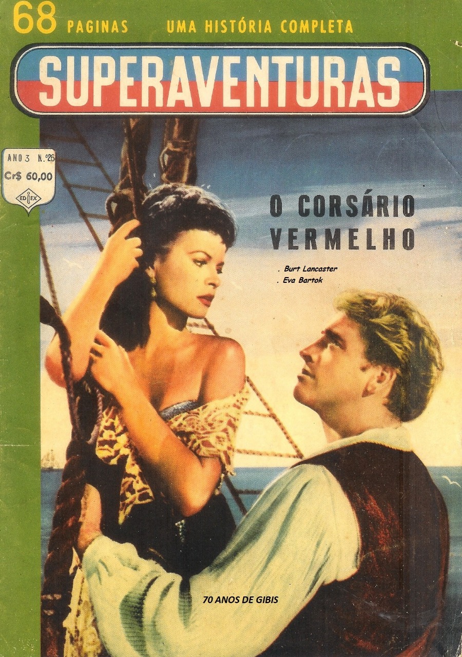 O gibi aqui abordado, foi um exemplar muito procurado à época porque o ator Burt Lancaster estava em grande evidência, principalmente perante o público infanto-juvenil, por conta dos dois filme que foram estrelados por ele: O Pirata Sangrento e O Gavião e a Flecha, fantásticos representantes do cinema de aventura, acredito até que tenham sido os dois maiores filmes de aventuras desse período entre 1950 e 1960. A propósito, estes três filmes de Lancaster, os dois citados e este aqui abordado, foram publicados nestes gibis da Ediex e estão comentados por mim neste módulo "Produtos - Acervo" deste site (vejam imagens abaixo).